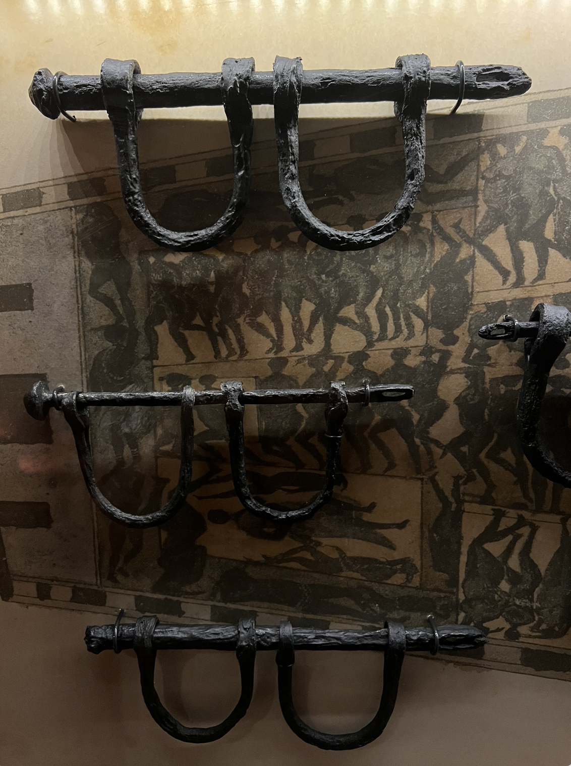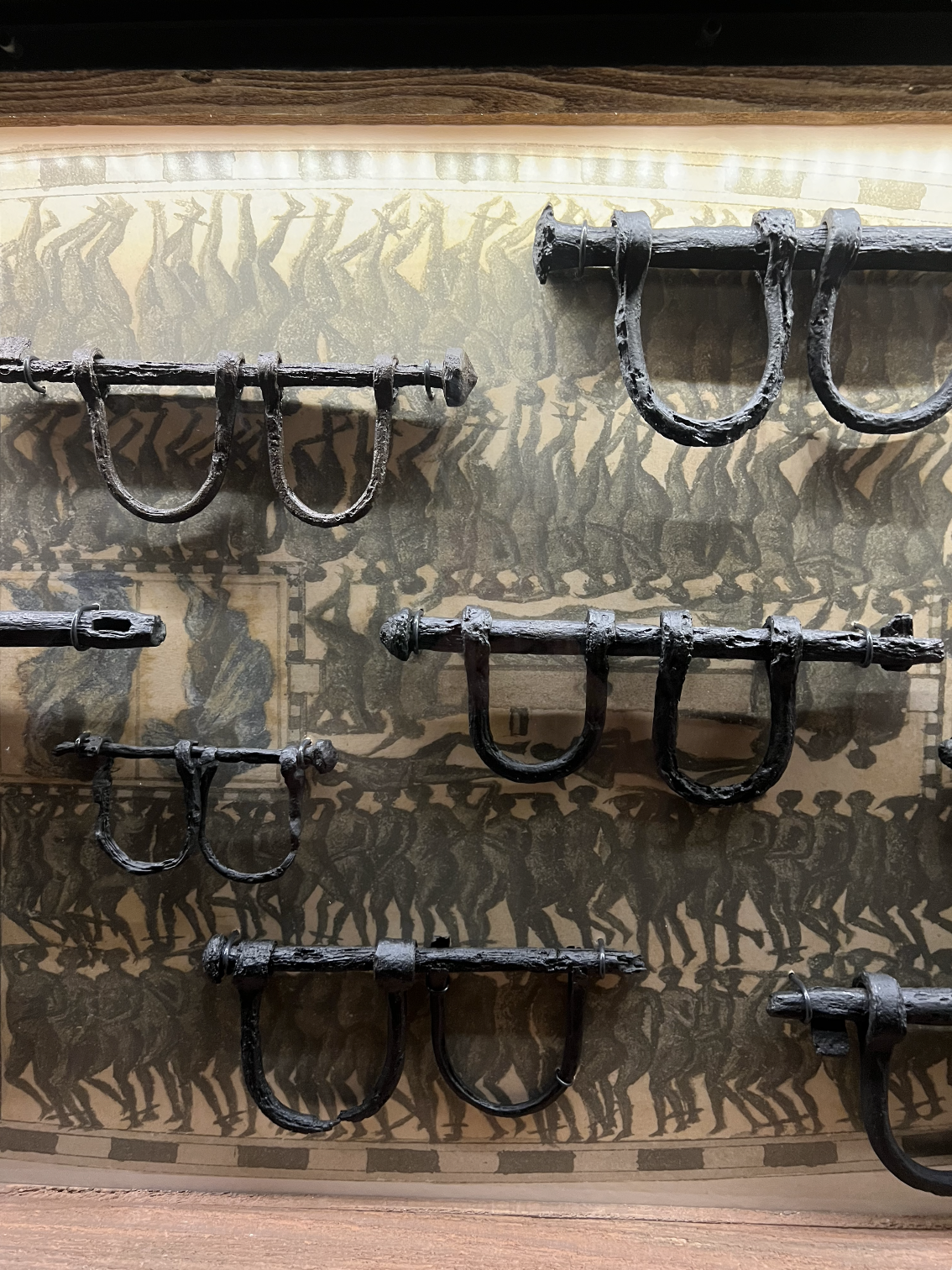 I wasn’t prepared for the size of the cauldron; designed to hold 85 gallons, my 5’4” frame easily could have fit inside. Contemplating the cauldron in person quickly put into perspective the sheer number of enslaved Africans who were typically crammed on board a slave ship. I pictured the food prepared here and wondered how many hands touched this cauldron. African names and identities were rarely recorded during the slave trade, but tangible artifacts remain as evidence of the horrors of the slave trade.